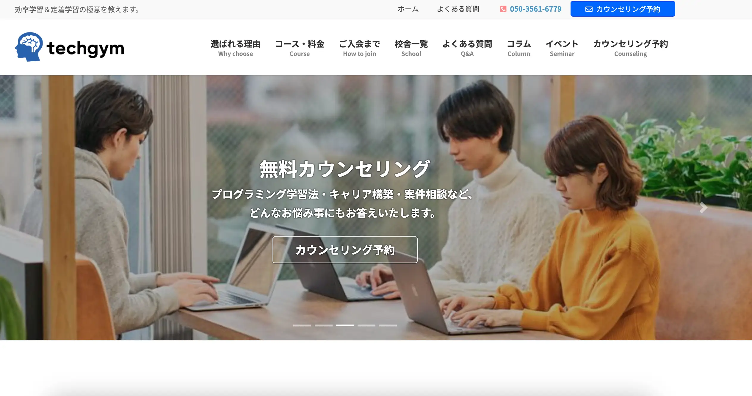 TechGym(テックジム) は、初心者から経験者まで幅広い層を対象にしたプログラミング学習サービスです。従来の座学中心の学習方法とは異なり、実践的な演習を重視したカリキュラムを採用しており、効率的にスキルを習得できるのが特徴です。