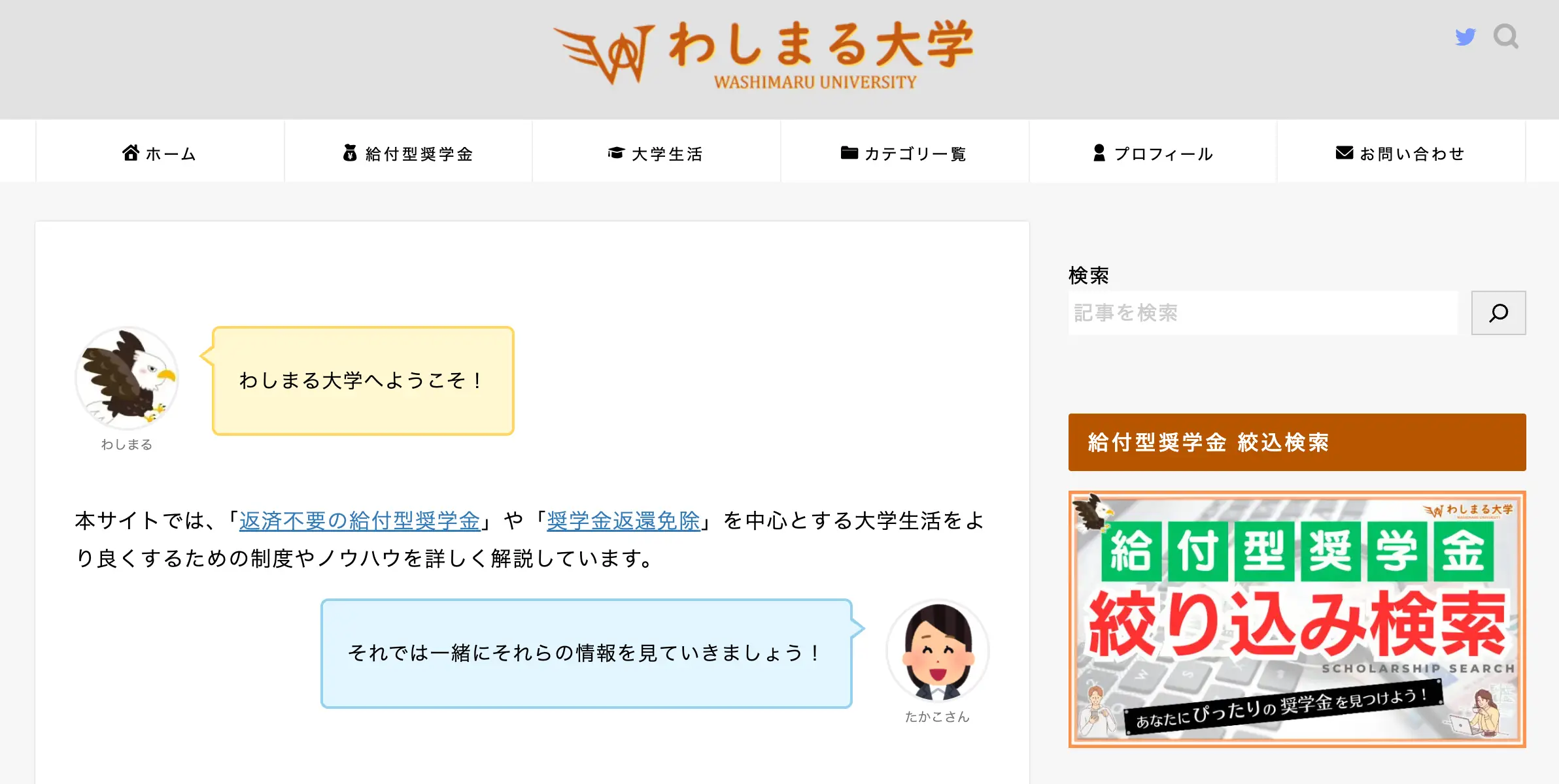 わしまる大学 ~大学生/大学院生のための給付型奨学金情報サイト~