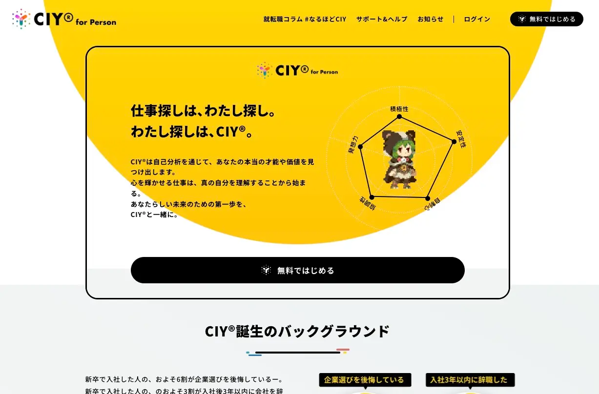 「仕事探しは、わたし探し。わたし探しは、CIY®。」