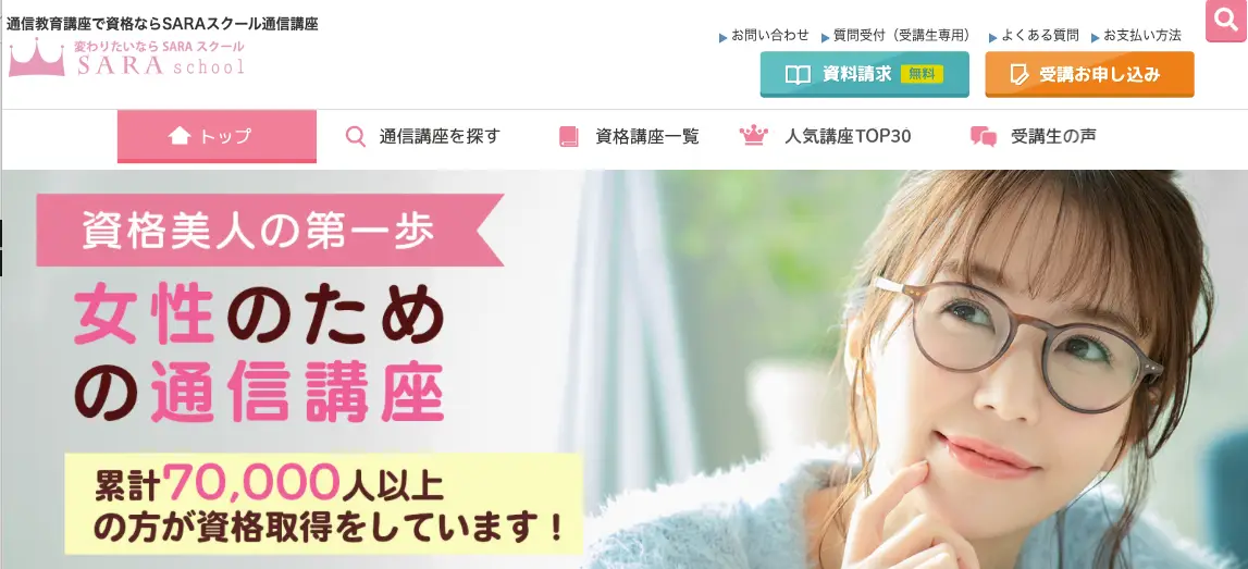 SARAスクールは、日本全国を対象とした通信講座で、主に資格取得やスキルアップを目的とする講座を提供しています。