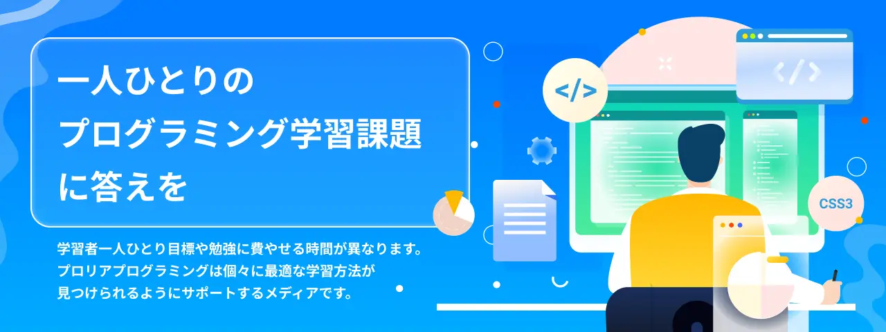 プロリア プログラミングは「一人ひとりのプログラミング学習課題に答えを」をミッションに運営し、個々に最適な学習方法が見つけられるようにサポートします。