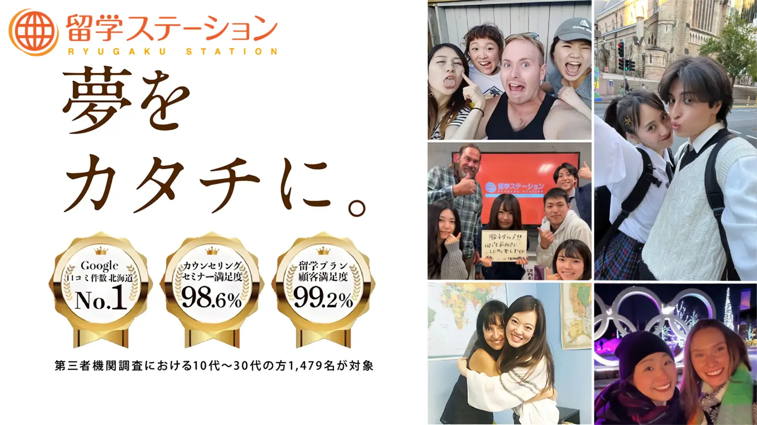手数料0円、為替レートの上乗せもなく「最低価格保証」だから、安心してスタートできます。提携先は世界10か国36都市300校以上あり安全で質の高い留学先を厳選し、渡航前から帰国後まで手厚いサポートが全て無料です。 Google口コミ400件以上で★4.9、直筆アンケート1000件以上の実績が信頼の証です。「楽しいだけで終わらない」「未来につながる」「自分だけの特別な留学」を実現するため、最適な選択肢をお届けします。